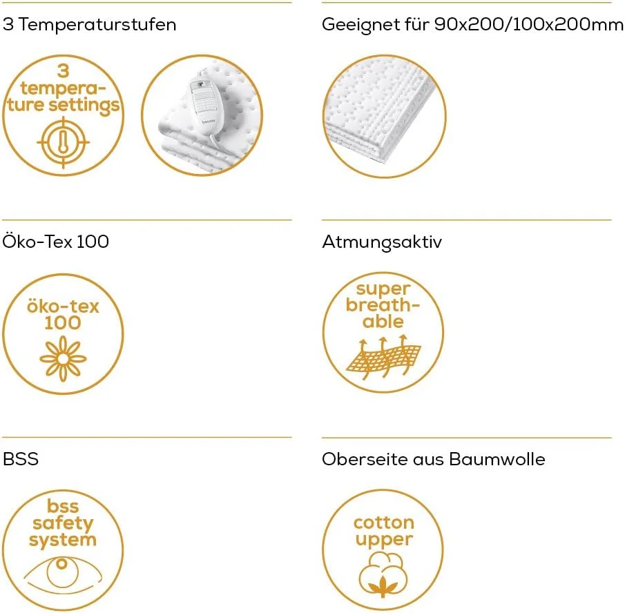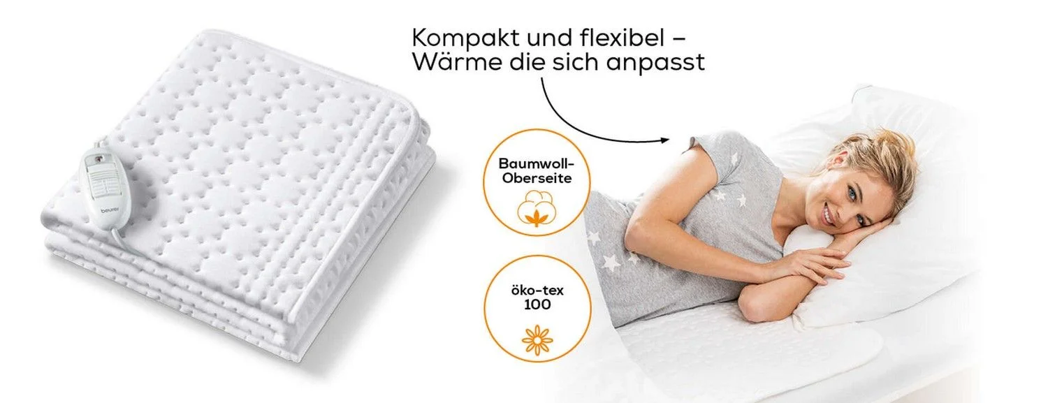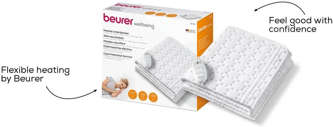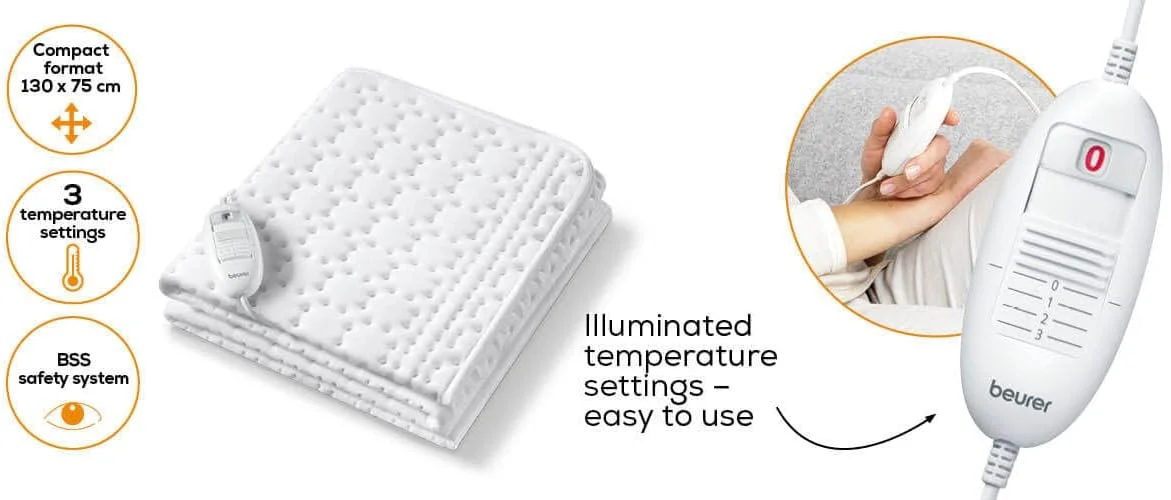 Електропростирадло Beurer, від мережі, 130х75см, 50Вт, 3 режими, бавовна, фліс, білий (UB_30)