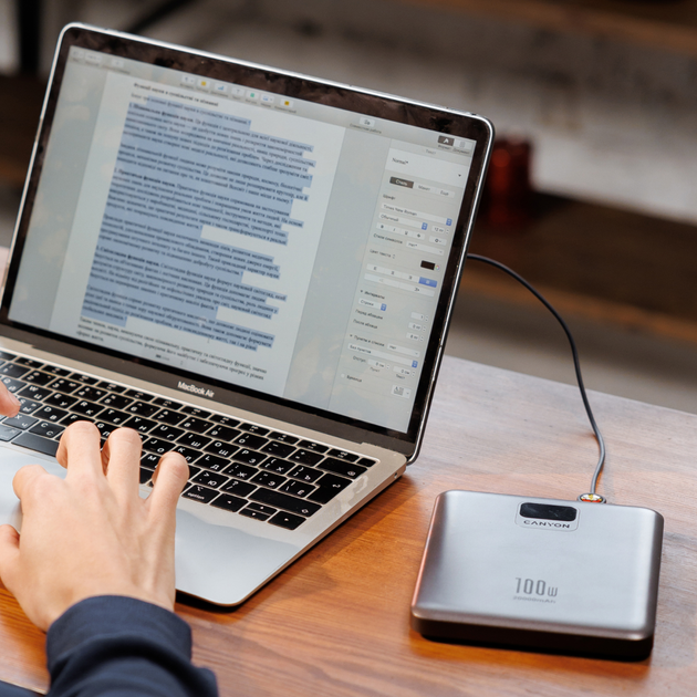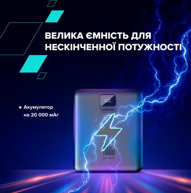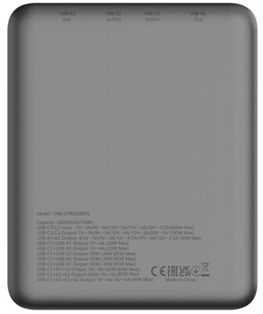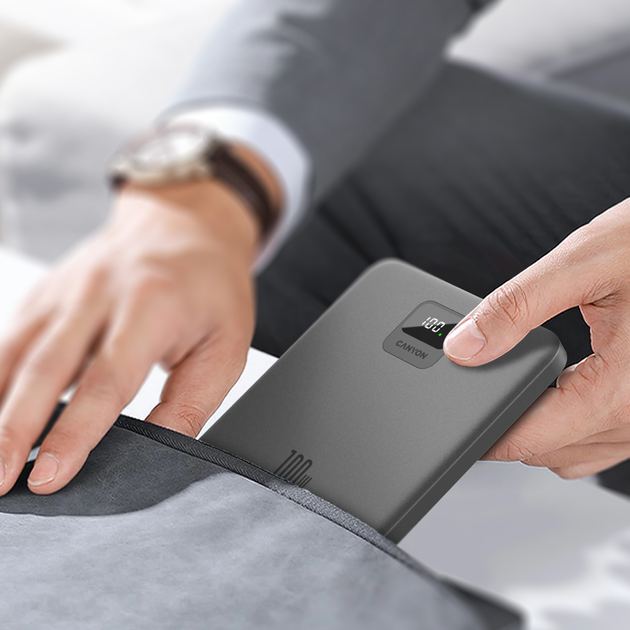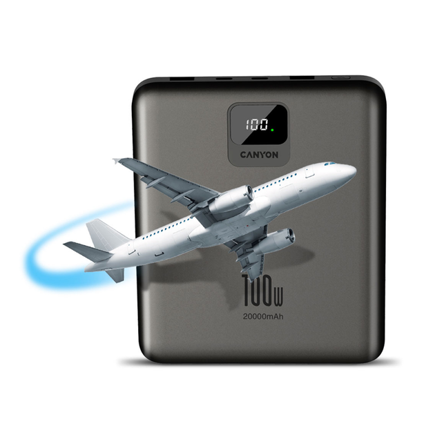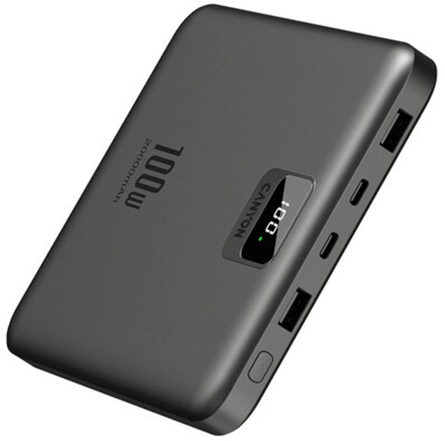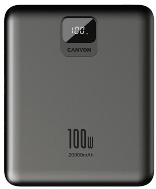 Зовнішній акумулятор CANYON PB-2008 LED FLAT 20000 mAh PD100W QC3.0 Dark Grey (CNE-CPB2008DG)