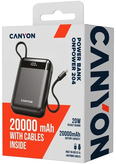 Зовнішній акумулятор Canyon OnPower 204 20000mAh 22.5W Black (CNS-CPB204B)