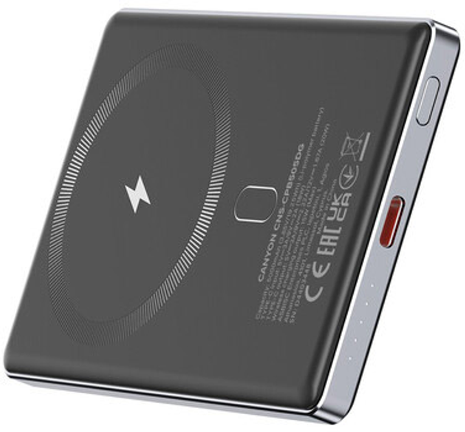 Зовнішній акумулятор Canyon OnPower 505 slim Magsafe 5000 mAh PD20W Dark Grey (CNS-CPB505DG)