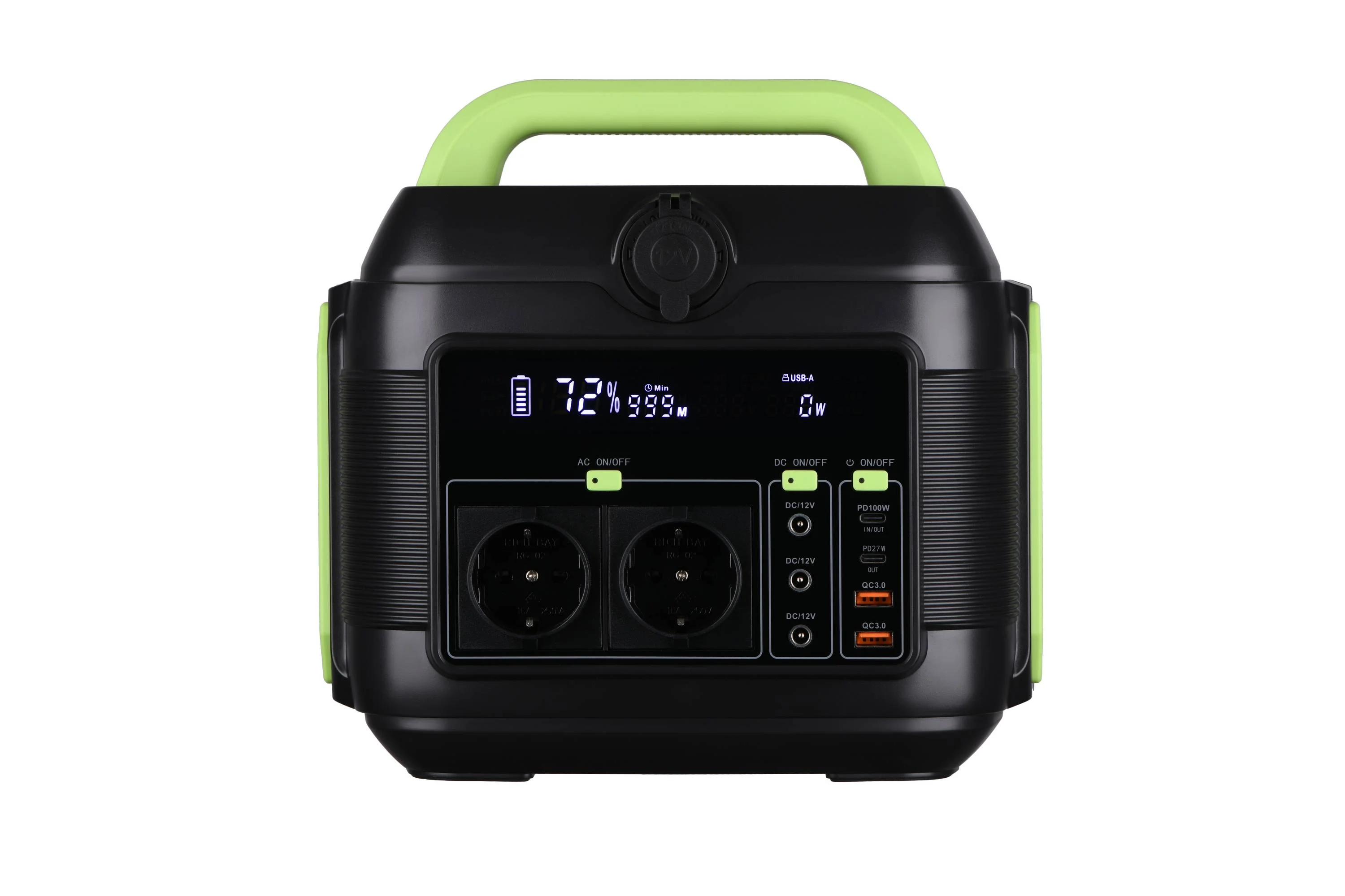 Безпрограшне поєднання чорного й зеленого кольору втілено в стійкому до впливу зовнішніх факторів пластиковому корпусі електростанції, всередині якого міститься літієва батарея. Заявлена потужність пристрою становить 600 Вт, ємність батареї – 160 000 мА·год. Перевантаження пристрою відбувається за 653 Вт упродовж 10 секунд, а допустима пікова потужність – 1 200 Вт (1 сек).