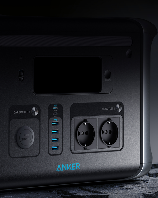 9 портів для всіх. Зарядна станція має всі порти, необхідні для заряджання пристроїв і приладів. Вона оснащена 2 розетками змінного струму, 4 портами USB-A, 2 портами USB-C і автомобільною розеткою. Завдяки портам USB-C потужністю 100 Вт для швидкої зарядки ви можете позбутися громіздких адаптерів і заряджати свій ноутбук на високій швидкості лише за допомогою одного кабелю.