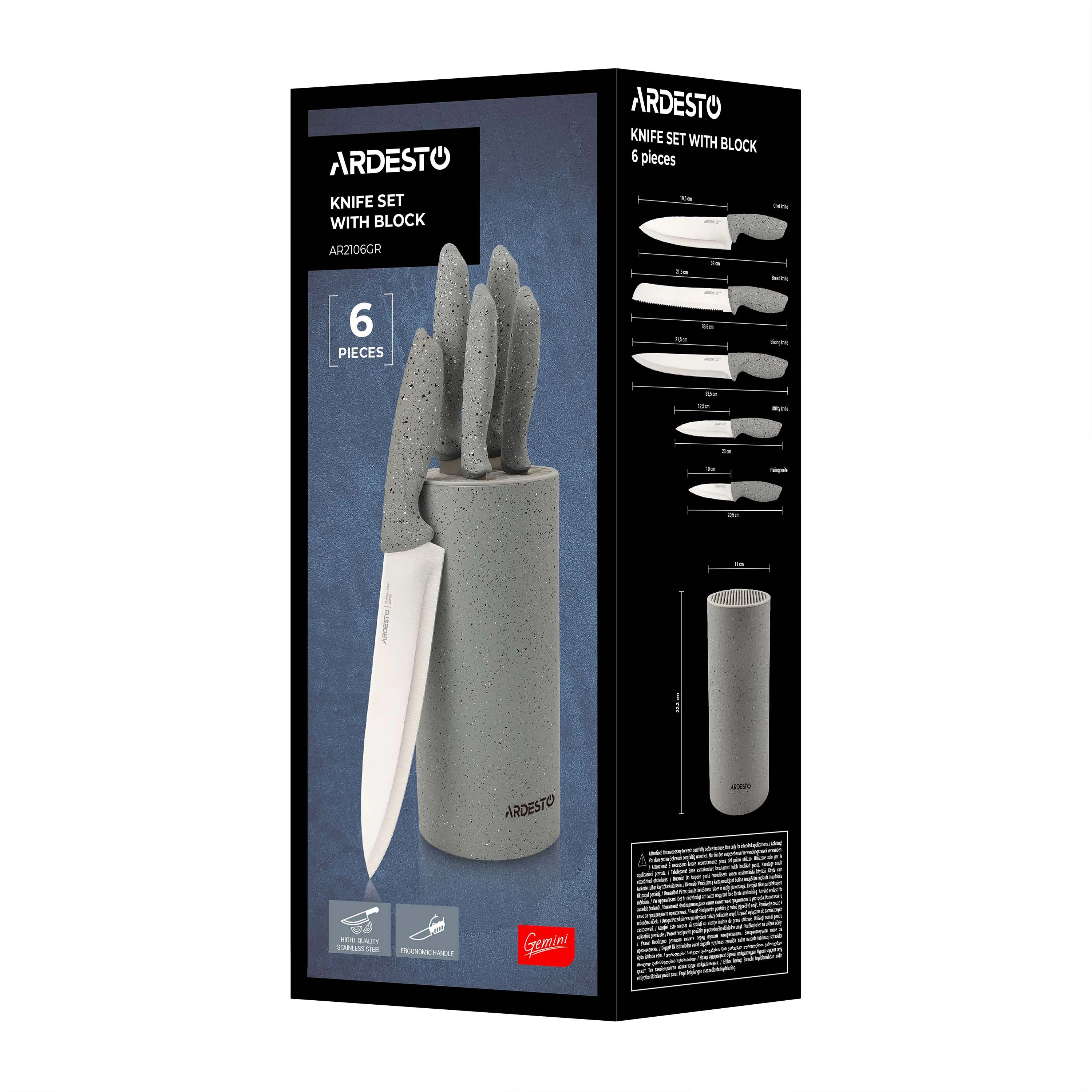 Набір ножів з блоком Ardesto Gemini, 6 предметів, нержавіюча сталь, пластик, сірий (AR2106GR)