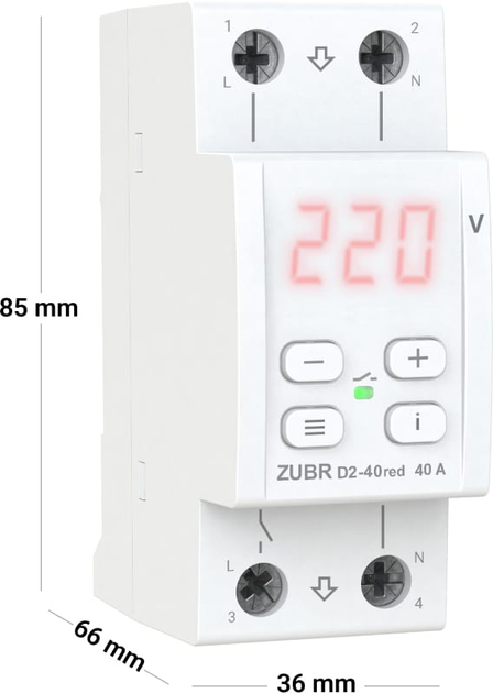 Реле напруги ZUBR D2-40 red (40 А, 8 800 ВА)