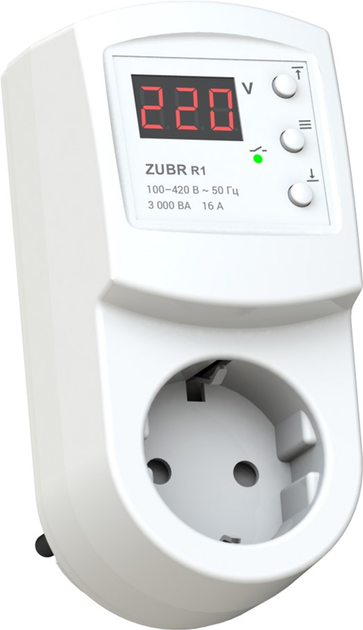 Реле напруги ZUBR R1 призначене для захисту обладнання від надмірних коливань напруги в мережі. Особливістю даної моделі є її встановлення у «євро» розетку. Реле вимикає навантаження при перевищенні допустимих меж напруги (максимальних і мінімальних).