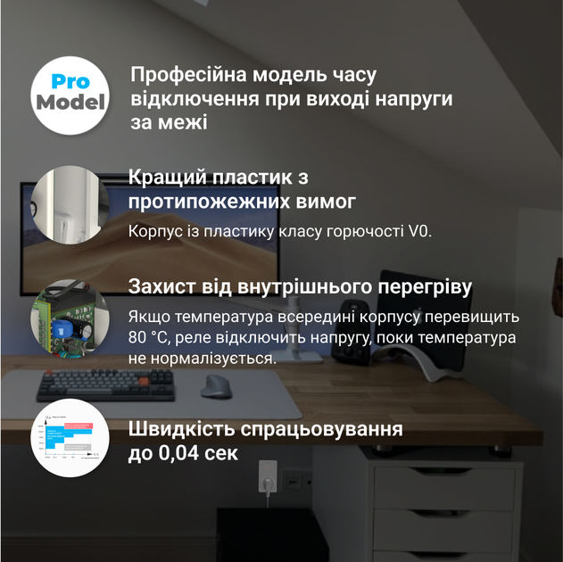 З реле напруги ZUBR SR1 red ви можете вибрати професійну модель вимкнення напруги. Вона дозволить не вимикати навантаження при безпечних за значенням і тривалістю відхиленнях напруги.